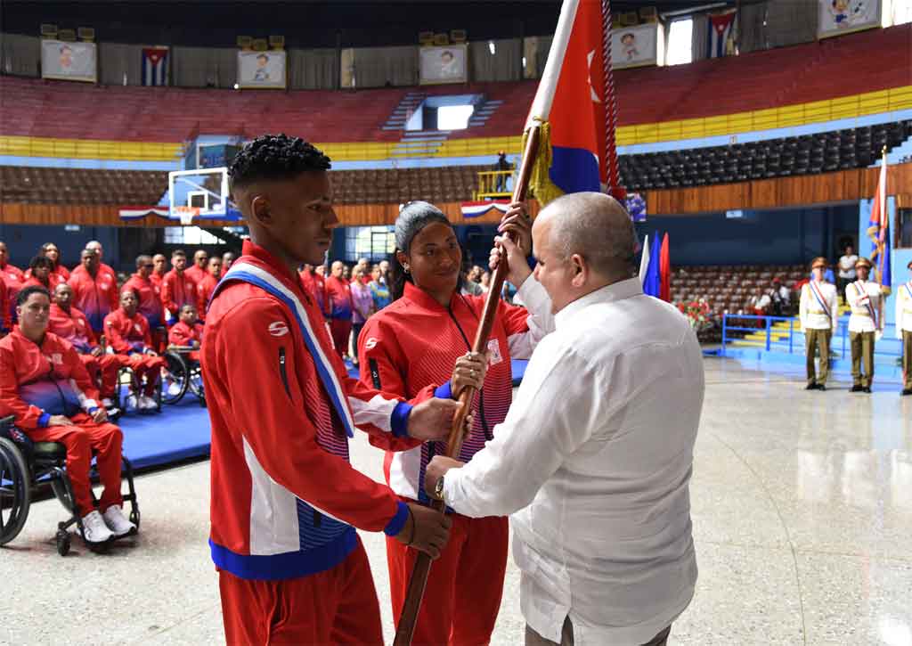 La ceremonia de abanderamiento, realizada en el Coliseo de la Ciudad Deportiva capitalina, estuvo presidida por Jorge Luis Broche Lorenzo, integrante del Secretariado del Comité Central del PCC, y Jorge Luis Perdomo Di Lella, viceprimer ministro.