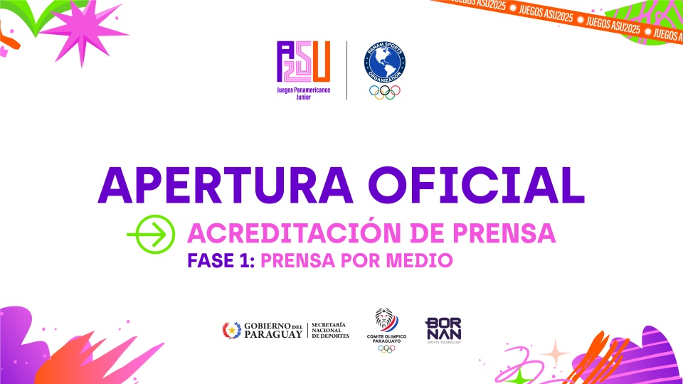 Asunción, Paraguay (3 de marzo de 2025) — El Comité Organizador de los Juegos Panamericanos Junior ASU2025 informa a los Comités Olímpicos Nacionales y a los responsables de medios de comunicación nacionales e internacionales sobre el sistema y fechas del proceso de acreditación para los Juegos a celebrarse desde el 9 al 23 de agosto, certamen que reunirá a más de 4 mil atletas provenientes de 41 países.
