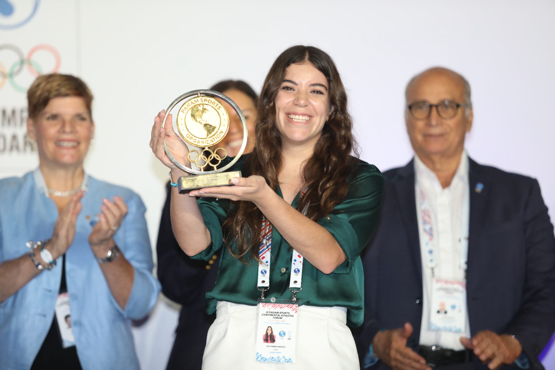 “Alejandra representa mucho para el deporte de las Américas. Es un ejemplo de trabajo, constancia, superación y amor por el deporte. Cuando anunció su retiro de la alta competencia, de inmediato pensamos en darle un reconocimiento y decirle gracias por tanto. Y qué mejor que hacerlo con sus pares aquí en el Foro de Atletas de Panam Sports”, indicó el Presidente Neven Ilic.
