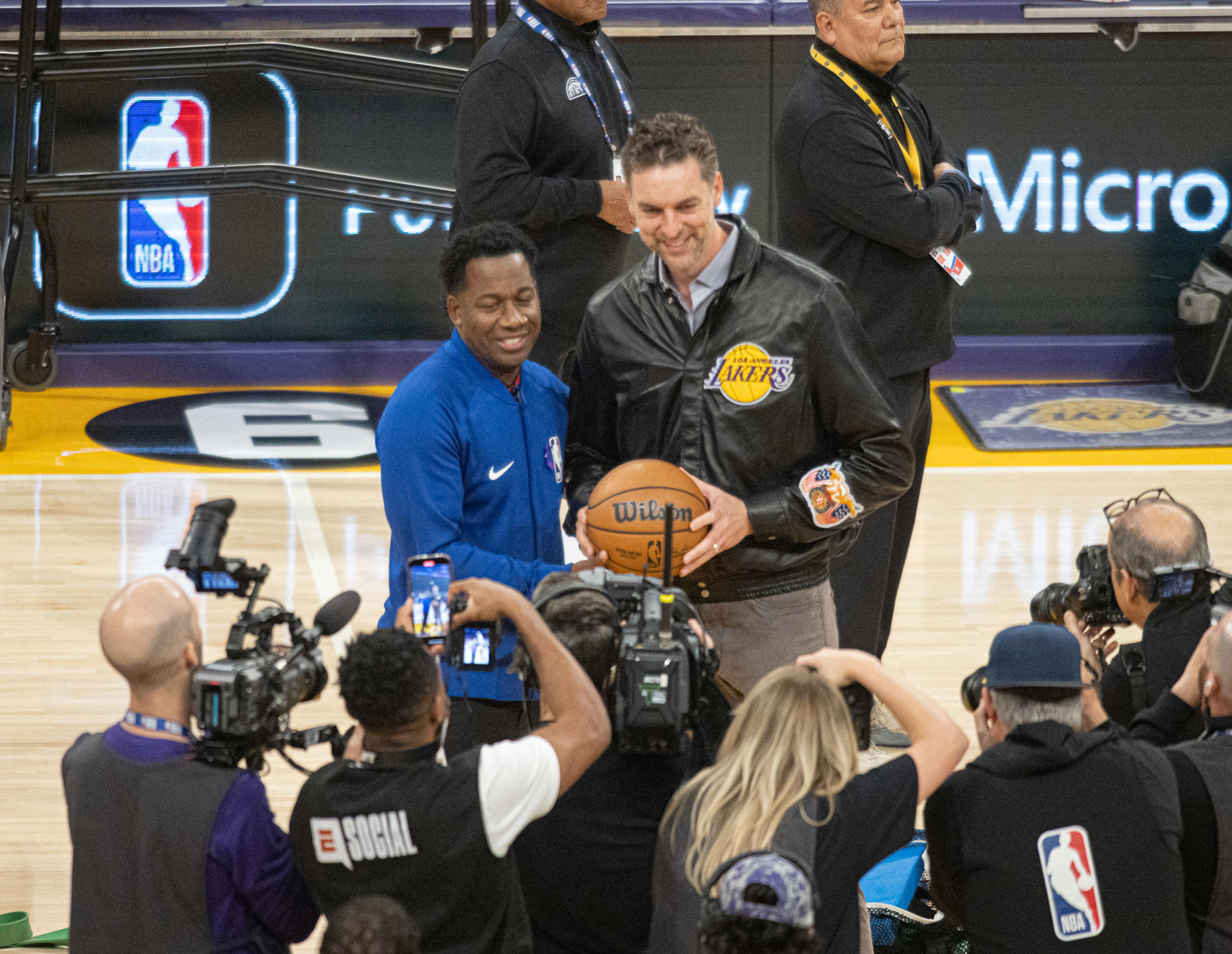 Acompañado por su esposa y con una chaqueta con su nombre y su número 16, Gasol recibió varias ovaciones de los aficionados de los Lakers, una de ellas durante un tiempo muerto que le llevó a ponerse de pie ante los aplausos de los espectadores.
