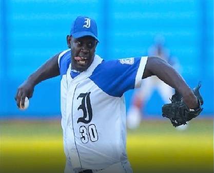 El pitcher e Industriales José Pablo Cuesta logró hoy su primera victoria con trabajo de 7 entradas y 3 carreras permitidas. Fuente Externa