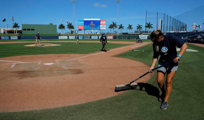 Un trabajador arregla el terreno de un estadio beisbol. Fuente Externa.