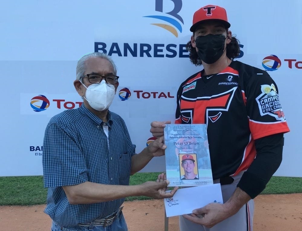 O’Brien fue seleccionado como más destacado en la tercera entrega de esta temporada del Pelotero Estrella, junto al derecho Chris Ellis, de los Gigantes del Cibao, escogido como mejor lanzador.