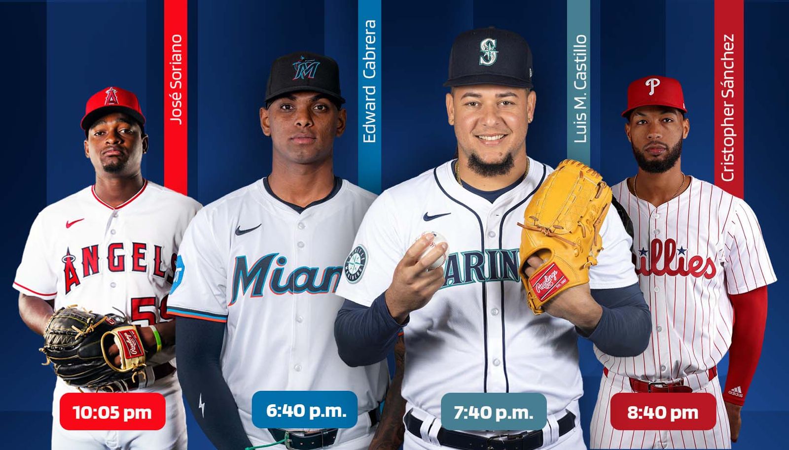 Cuatro lanzadores dominicanos subirán al montículo en la noche del lunes comenzando la se semana del 19 al 25 de mayo en el beisbol de las Grandes Ligas.