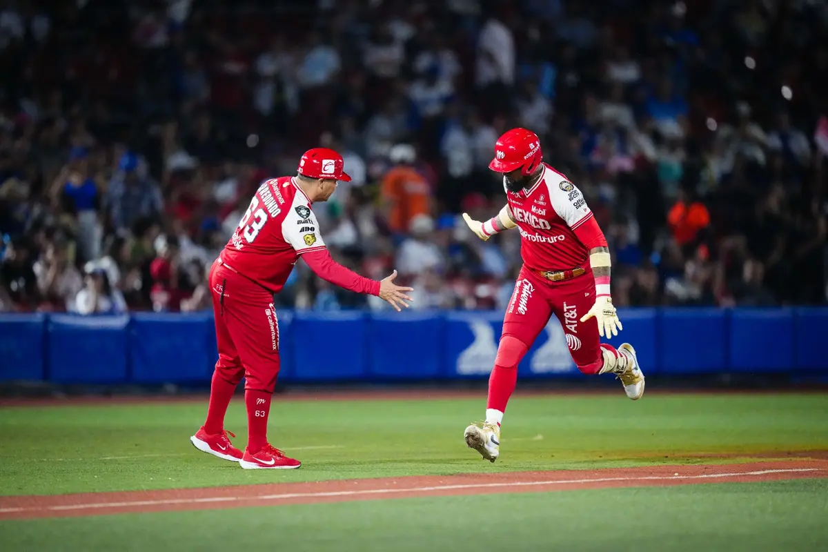 Zapopan, Jal. (www.lmb.com.mx / Leopoldo Ramírez Quezada) 13 de septiembre de 2025.- José Pirela bateó de 3-2 con un cuadrangular y produjo cuatro carreras, Carlos Pérez conectó dos vuelacercas y los Diablos Rojos del México vencieron 7-2 a los Charros de Jalisco para colocarse con ventaja de 3-0 en la Serie del Rey 2025 presentada por G500.