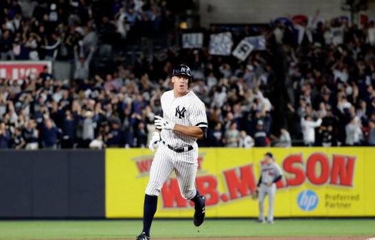 En esta imagen de archivo, el jardinero de los Yankees Aaron Judge recorre las bases luego de conectar cuadrangular en la cuarta entrada de la victoria de Nueva York sobre los Mellizos en el juego de comodines de la Liga Americana. (AP/Frank Franklin II)