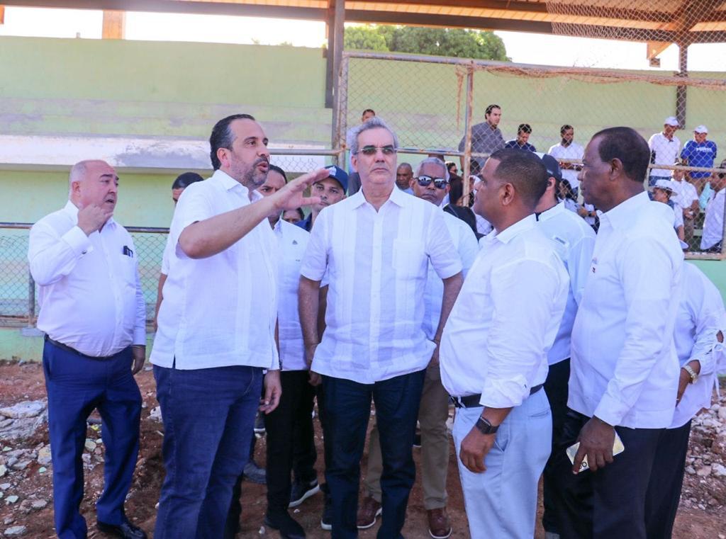 El presidente Abinader y Alberto Rodríguez, director ejecutivo de INEFI, realizaron un recorrido por el estadio de béisbol Nadin J. Hazoury, de Barahona, que será una de las instalaciones cumbre de la décima edición de los Juegos Escolares Deportivos Nacionales.