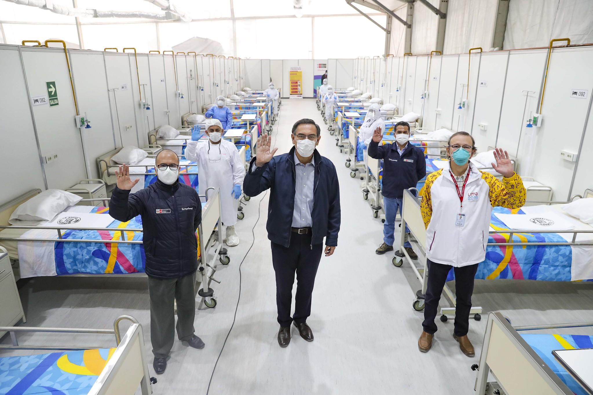 El Presidente de la República de Perú, Martín Vizcarra, acompañado del ministro de Salud, Víctor Zamora, en la entrega formal del primer hospital temporal instalado en las instalaciones de Villa Panamericana, Lima 2019/ Fuente Externa