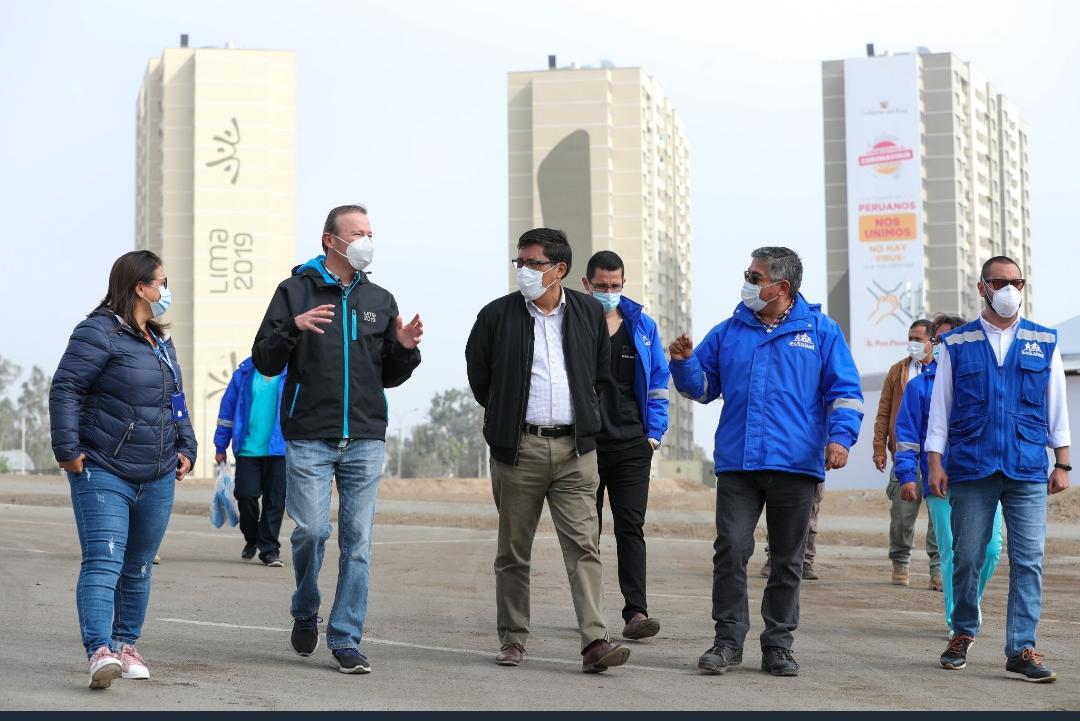 En esta visita estuvo acompañado por Alberto Valenzuela, Director Ejecutivo del Proyecto Especial Legado Juegos Panamericanos y Parapanamericanos, que cedió sus instalaciones a EsSalud por la emergencia sanitaria, a causa de la pandemia del COVID-19.