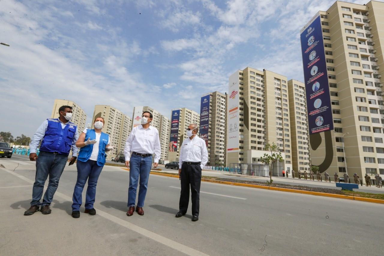 LIMA, Perú.- El Presidente de la República, Martín Vizcarra, visitó la Villa Panamericana, Legado de los Juegos Lima 2019 en el corazón de Villa El Salvador, donde inspeccionó las torres 1 y 2 que han sido habilitadas con el apoyo de los colaboradores del Legado, para albergar a 900 pacientes positivos COVID-19.