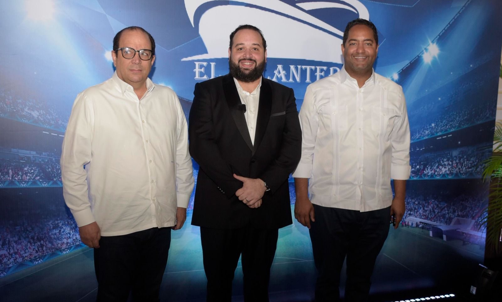 Fernando Dauhajre, productor de “El Delantero” (en el centro), junto a los viceministros Franklin de la Mota, del Ministerio de Deportes y Benny Mets, de la Presidencia y Comisionado de Fútbol. Fuente Externa
