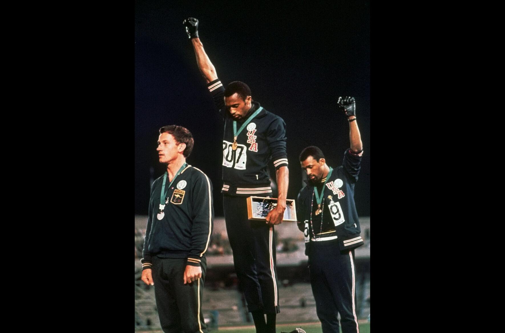 Una de las protestas más famosas e icónicas en unos Juegos Olímpicos fue el Saludo del Poder Negro en México 1968. Tras ganar la carrera de los 200 metros, los atletas afroamericanos Tommie Smith y John Carlos, medalla de oro y de bronce, respectivamente, alzaron su puño envuelto en un guante negro mientras comenzaba a sonar el himno nacional de Estados Unidos como señal de protesta por los derechos civiles negros en dicho país.