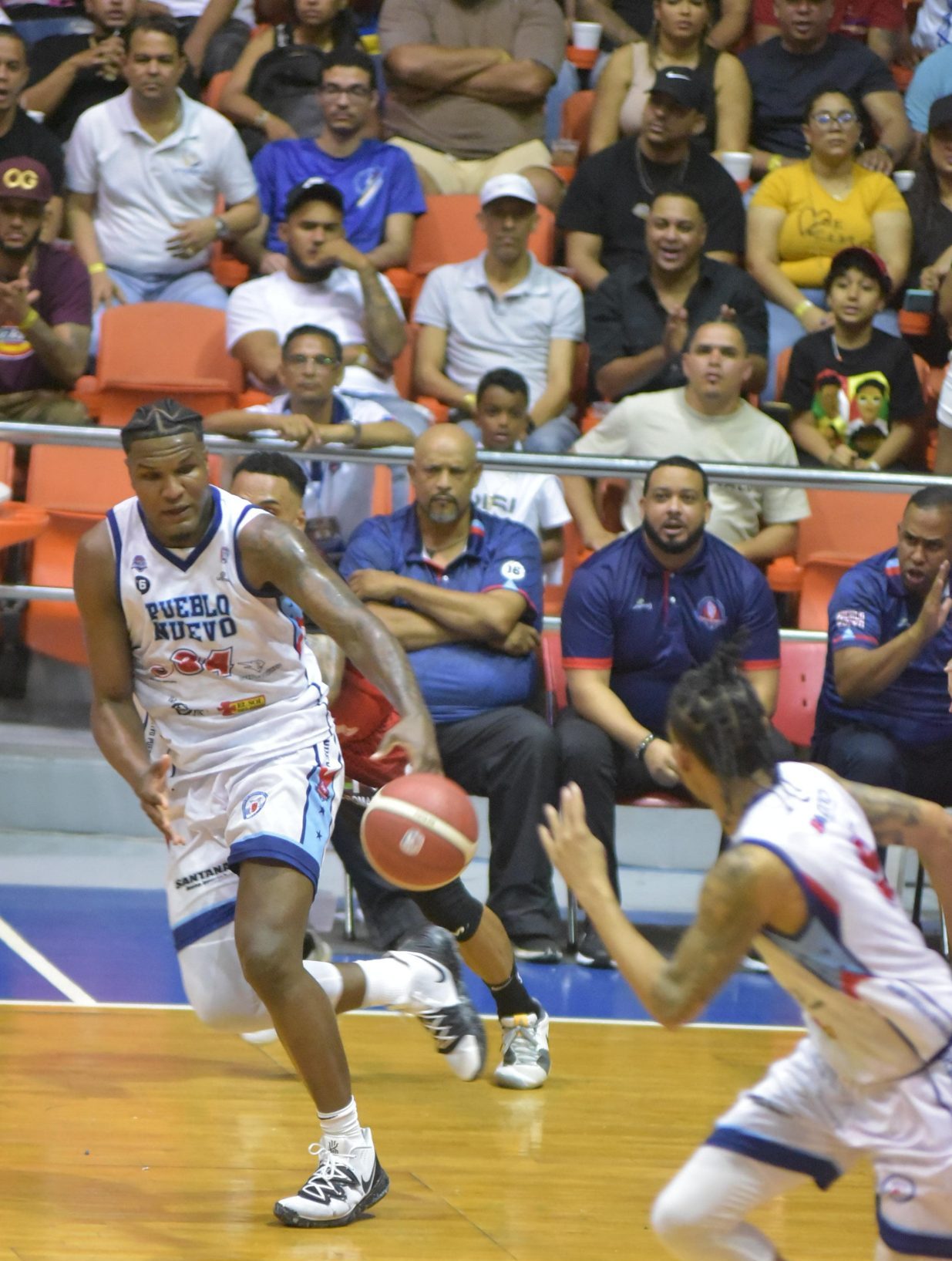 Por Pueblo Nuevo que combinó cinco jugadores con cifras dobles y pone la serie 1-0 a su favor Luismal Ferreira encabezó la ofensiva con 21 puntos con ocho rebotes, Jassel Pérez coqueteó con un triple-doble con 20 tantos, 11 rebotes y ocho asistencias, Ronald Tineo con 14 puntos y tres rebotes, 13 para Richard Bautista con seis tableros y seis asistencias, y el capitán Víctor Liz 10, con siete asistencias y siete rebotes.