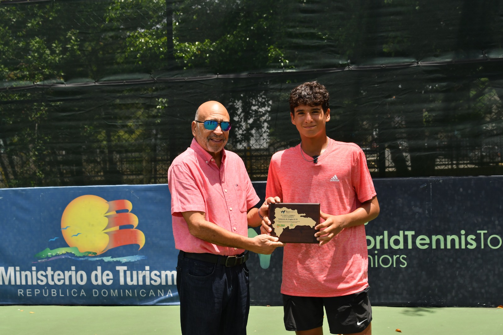 Jossting Cruz y Giancarlo Rosario, campeones de dobles, premiados por Sergio Tobal. Fuente Externa