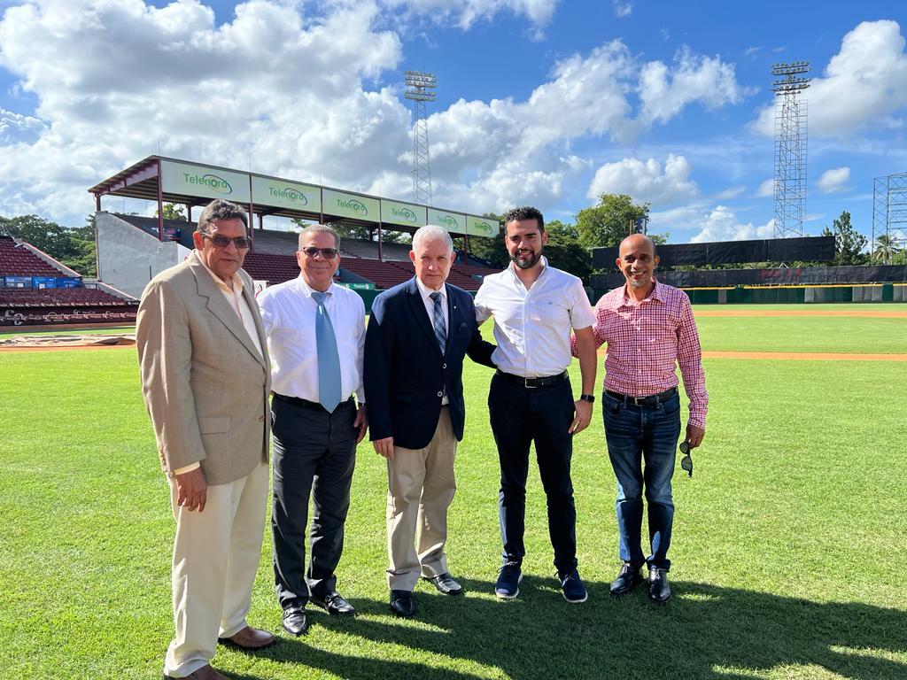 El comisionado junto a sus acompañantes contempló y apreció las transformaciones que viene logrando el estadio Julián Javier, para una eficiente práctica del béisbol profesional, con miras al inicio del torneo Lidom 2023-2024, evento que tendrá su apertura el 19 de octubre.