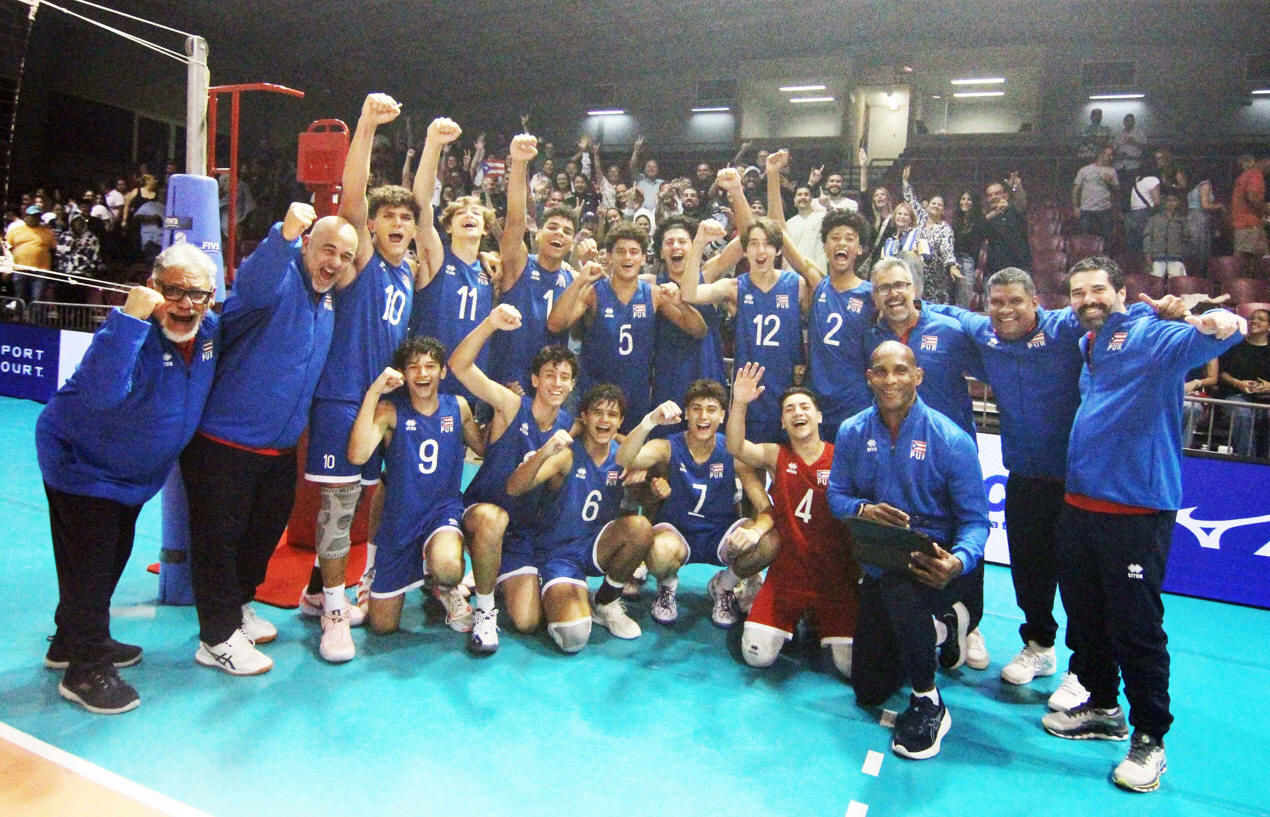 PONCE, Puerto Rico, 16 de mayo de 2024.- Estados Unidos venció a Cuba 3-0 (25-22, 25-17, 25-18)con dominante bloqueo (16-4) para avanzar directamente a las semifinales del Campeonato Continental NORCECA Masculino Sub-19 en Ponce, Puerto Rico.