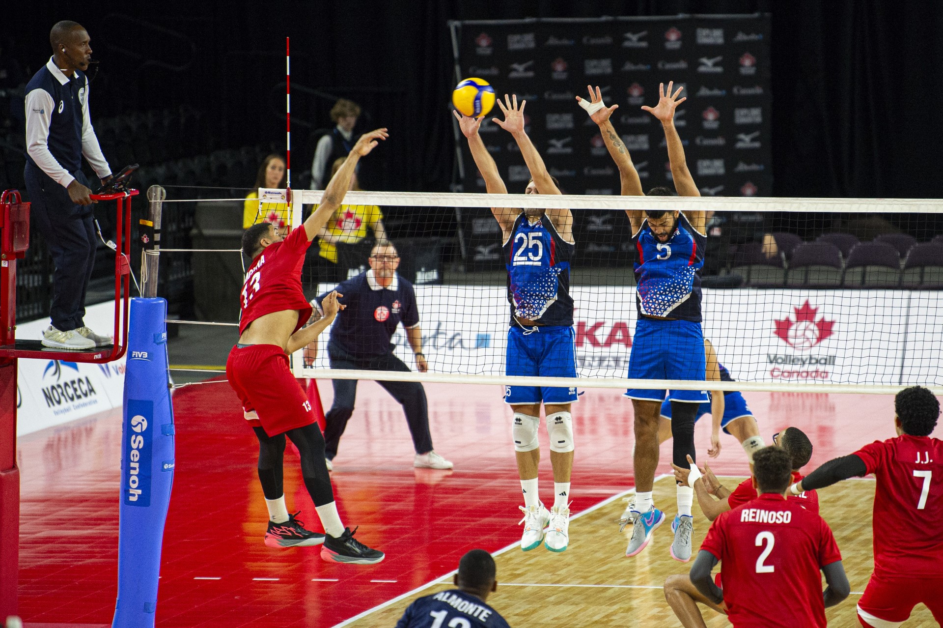 EDMONTON, CANADÁ. 23 de septiembre de 2023: Puerto Rico logró una victoria en cinco sets hoy sobre República Dominicana en la Copa Panamericana NORCECA Final Six masculina que se celebra del 19 al 24 de septiembre en el Flair Airlines Hangar (Expo Center), en Edmonton, Alberta.
