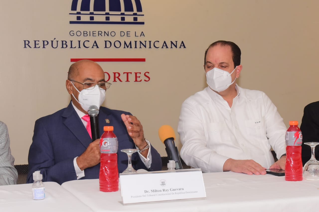 El doctor Milton Ray Guevara, presidente del Tribunal Constitucional de la Republica Dominicana, y el viceministro administrativo del MIDEREC, ingeniero Franklin de la Mota.