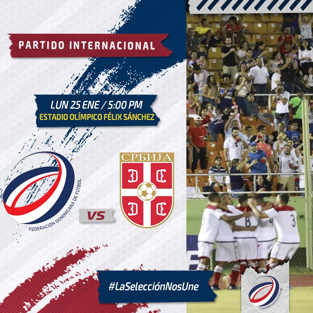 mundialista como lo es Serbia, un rival de mucho nivel y que está ubicado en el puesto 30 del Ranking FIFA. Hemos estado trabajando desde hace mucho tiempo en la organización de este desafío y agradecemos a la Asociación de Fútbol de Serbia por aceptar nuestra invitación. Vamos a continuar haciendo los esfuerzos para que este intercambio deportivo se realice de la mejor manera y sea de provecho para República Dominicana”.