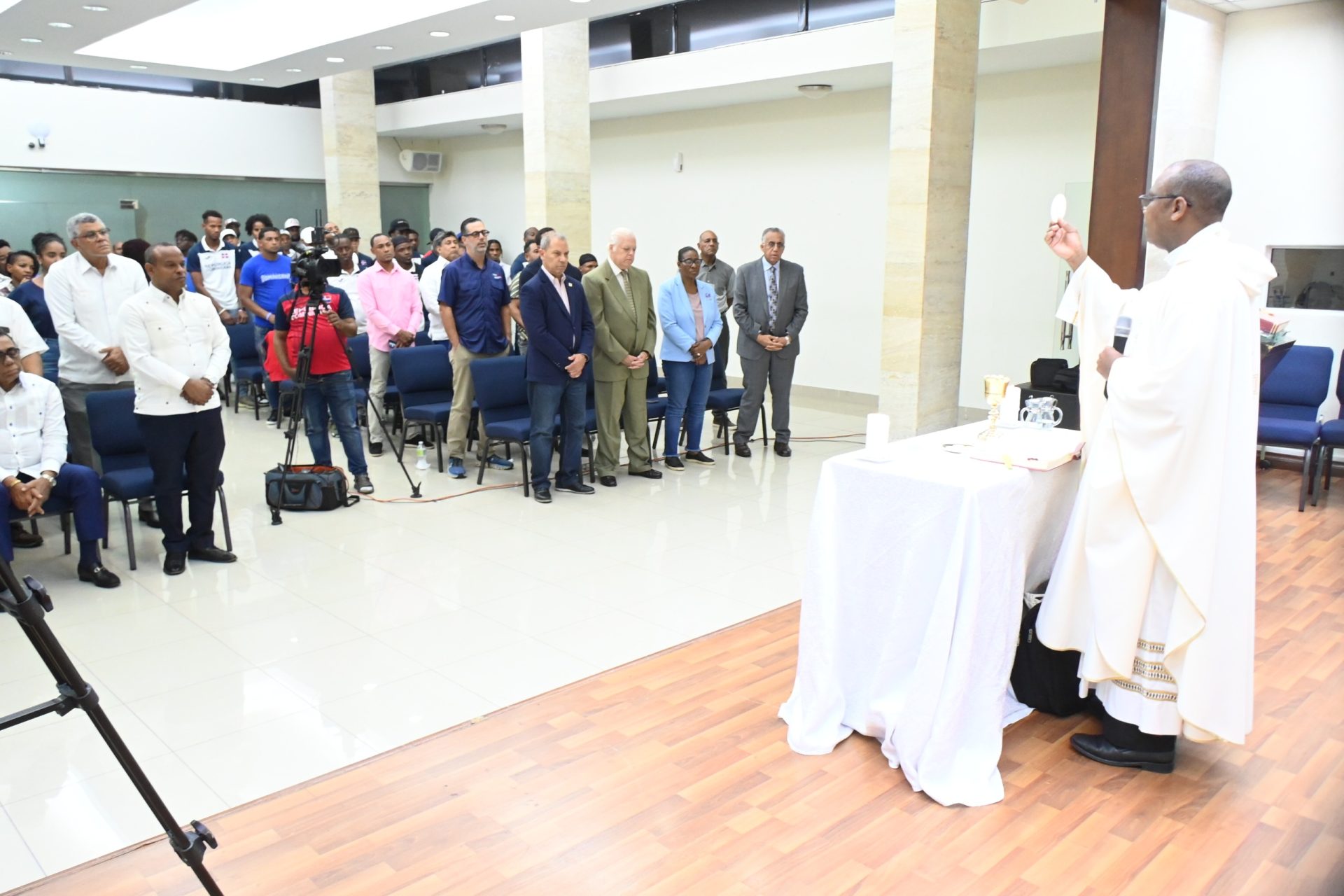 La Eucaristía de bendición a la delegación fue oficiada por el padre Candelario Mejía, de la Pastoral Deportiva de la Arquidiócesis de Santo Domingo.