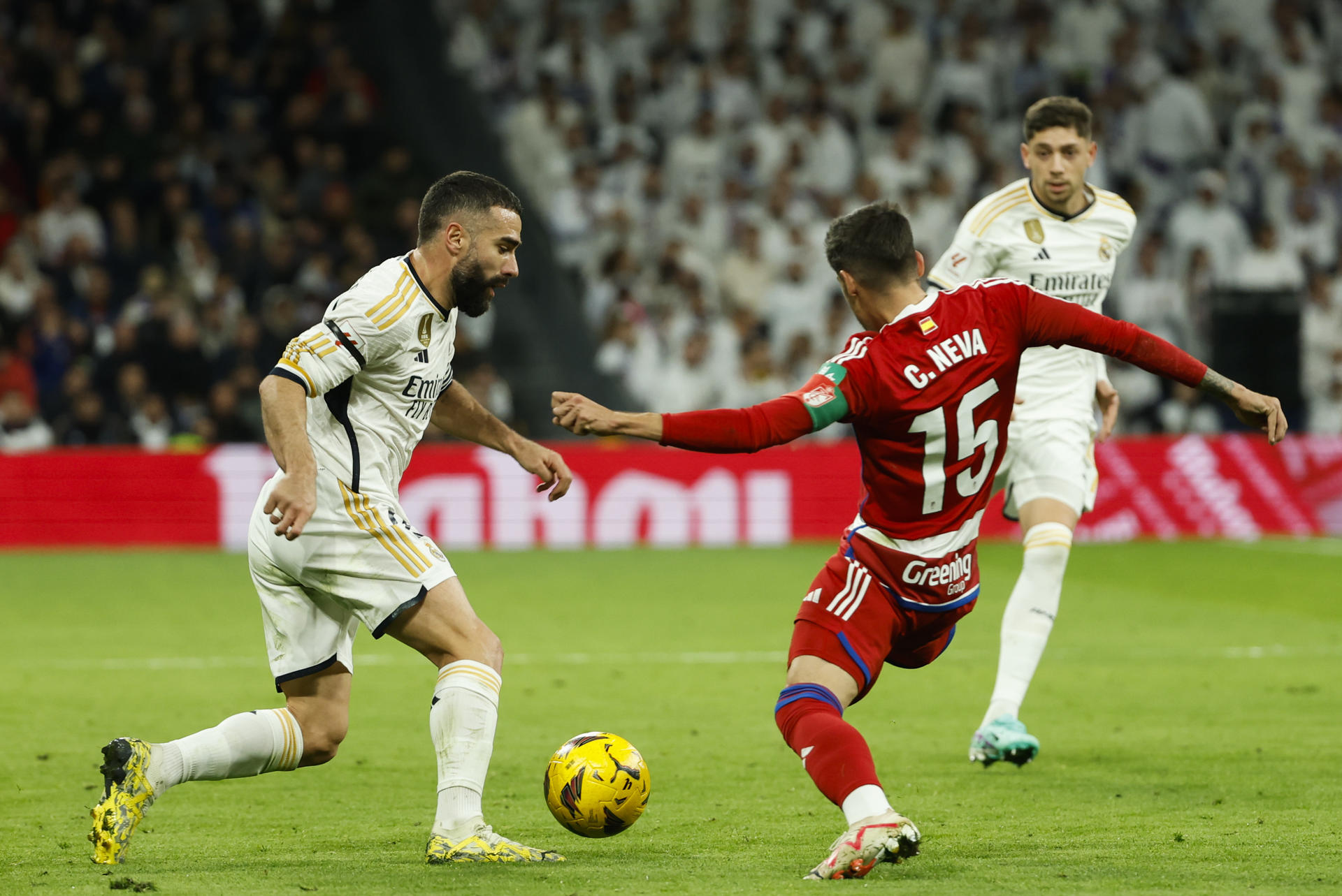 Carvajal sufrió la lesión en el sóleo durante la primera mitad del partido del sábado frente al Granada después de tres titularidades de forma consecutiva, dos con el Real Madrid y una con España.