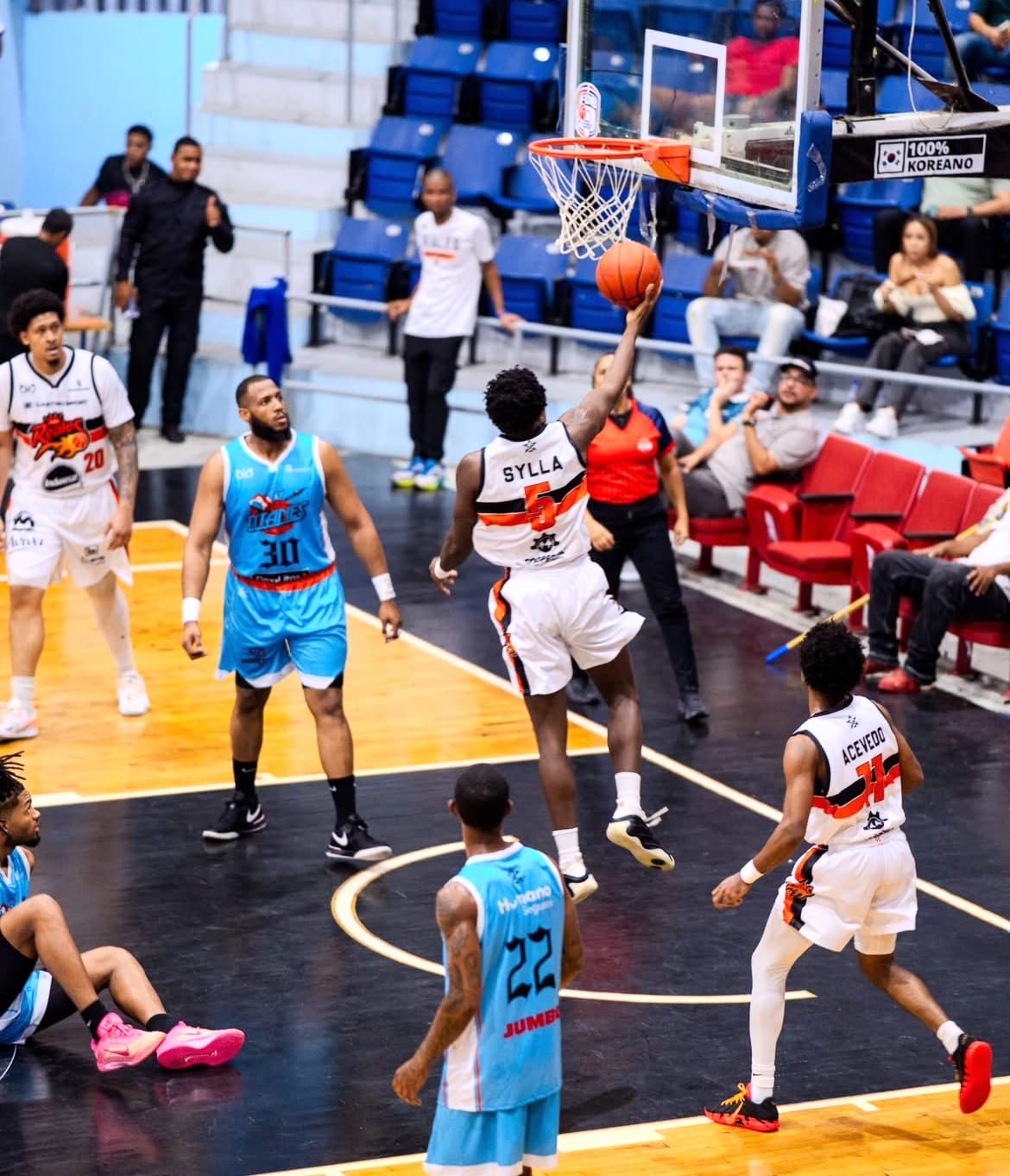 Tras un robo de balón y triple de Randy Bautista, los Titanes igualaron las acciones por 50, cuando restaban 5:40 por jugar del tercero, sin embargo, los Reales despegaron por 10 (64-54), luego de que Sylla anotara tras recibir una falta, la cual cobró efectivamente, restando 2:13, pero un triple de Shaun Williams descontaba para aproximar a los azules de 4 (64-60), con 42 segundos para finalizar el parcial.