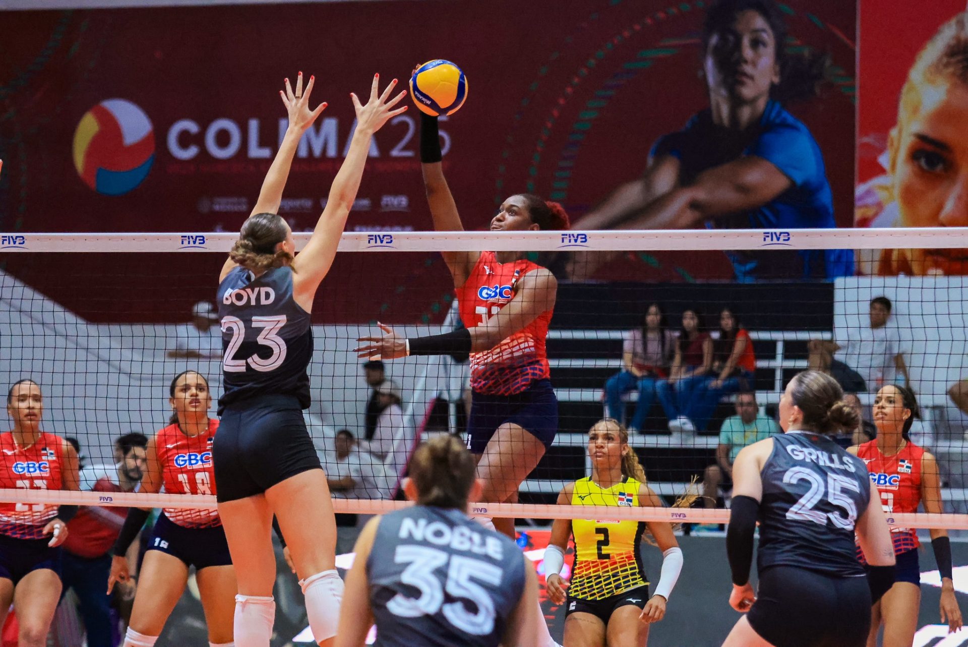 COLIMA, MEXICO (8-08-2025). El sexteto femenino de la República Dominicana derrotó anoche tres sets por dos a Canadá (25-19, 15-25, 25-14, 28-26 y 25-15), para conseguir así su pase a una de las series semifinales, en un choque bien reñido que duró horas y cuatro minutos, correspondiente al Grupo B, de la XXII Copa Panamericana de Voleibol.