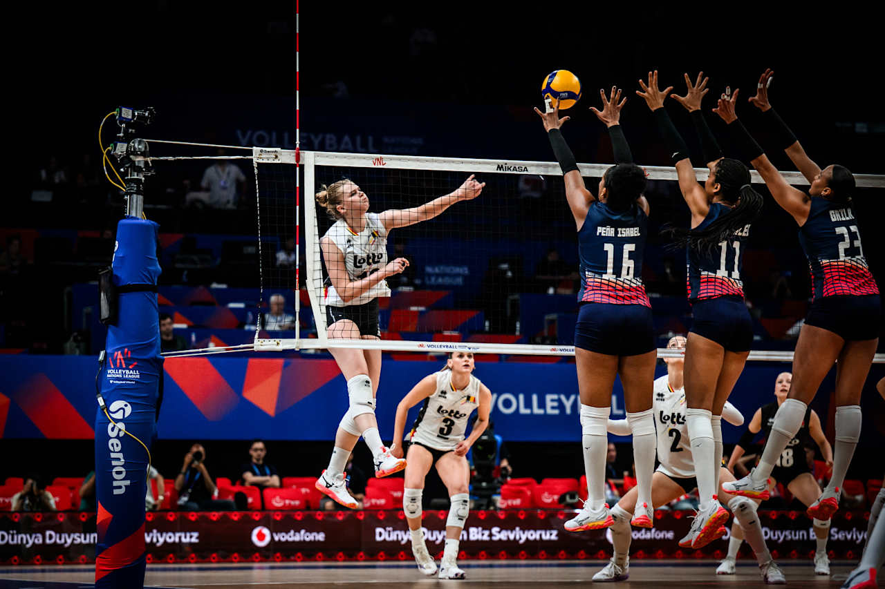 En la causa perdida, Pauline Martín fue la mejor con 10 tantos y Brett Herbots con siete. El sexteto femenino de Bélgica, con ese revés, puso su marca en uno ganado y cinco perdidos en la VNL.