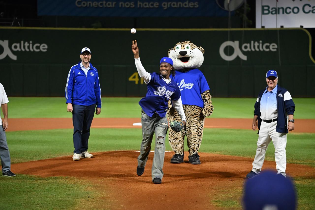 El relevista dominicano Abner Uribe tuvo a su cargo el lanzamiento ceremonial de la primera bola, previo al encuentro entre los Leones del Escogido y Tigres del Licey celebrado este martes en el estadio Quisqueya Juan Marichal.