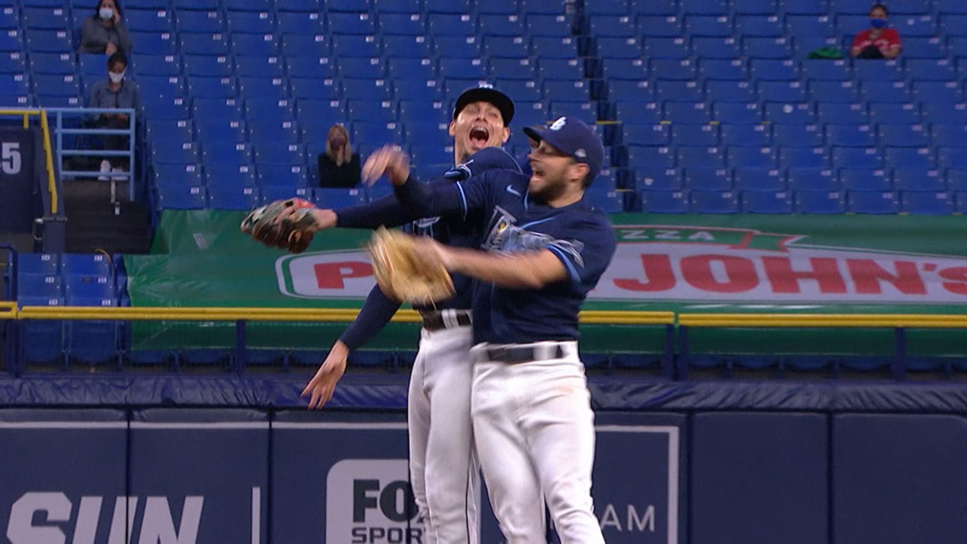 Tras el último out, los Rays festejaron con algunos abrazos y apretones de manos.