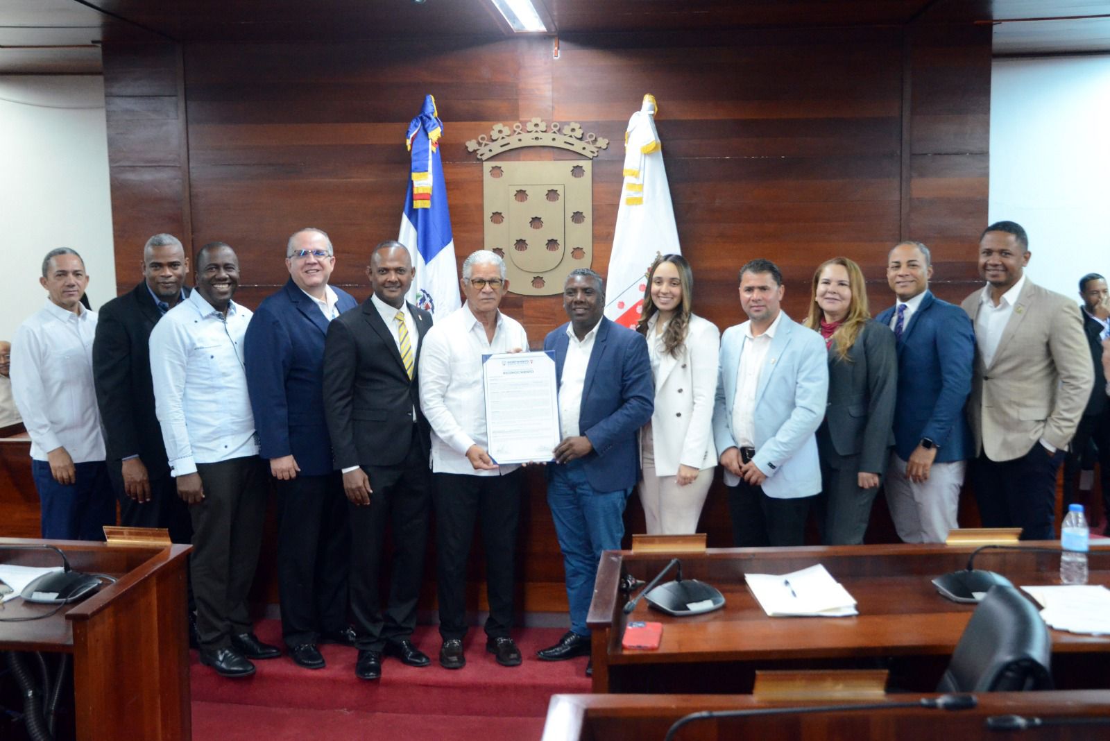 La entrega del reconocimiento se realizó en sesión ordinaria encabezada por el presidente y la vicepresidenta del Concejo, junto a los regidores, autoridades municipales, familiares y personalidades del ámbito deportivo, entre ellos el inmortal del deporte dominicano Winston “Chilote” Llenas.
