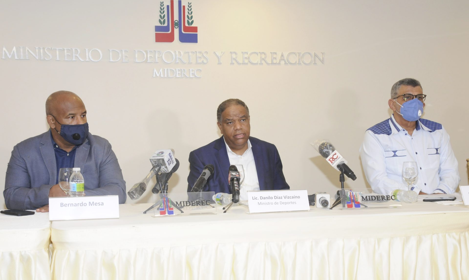 Al centro el ministro de deportes Danilo Díaz, a su izquierda Bernardo Mesa y a la derecha Rafael Villalona/ Fuente Externa