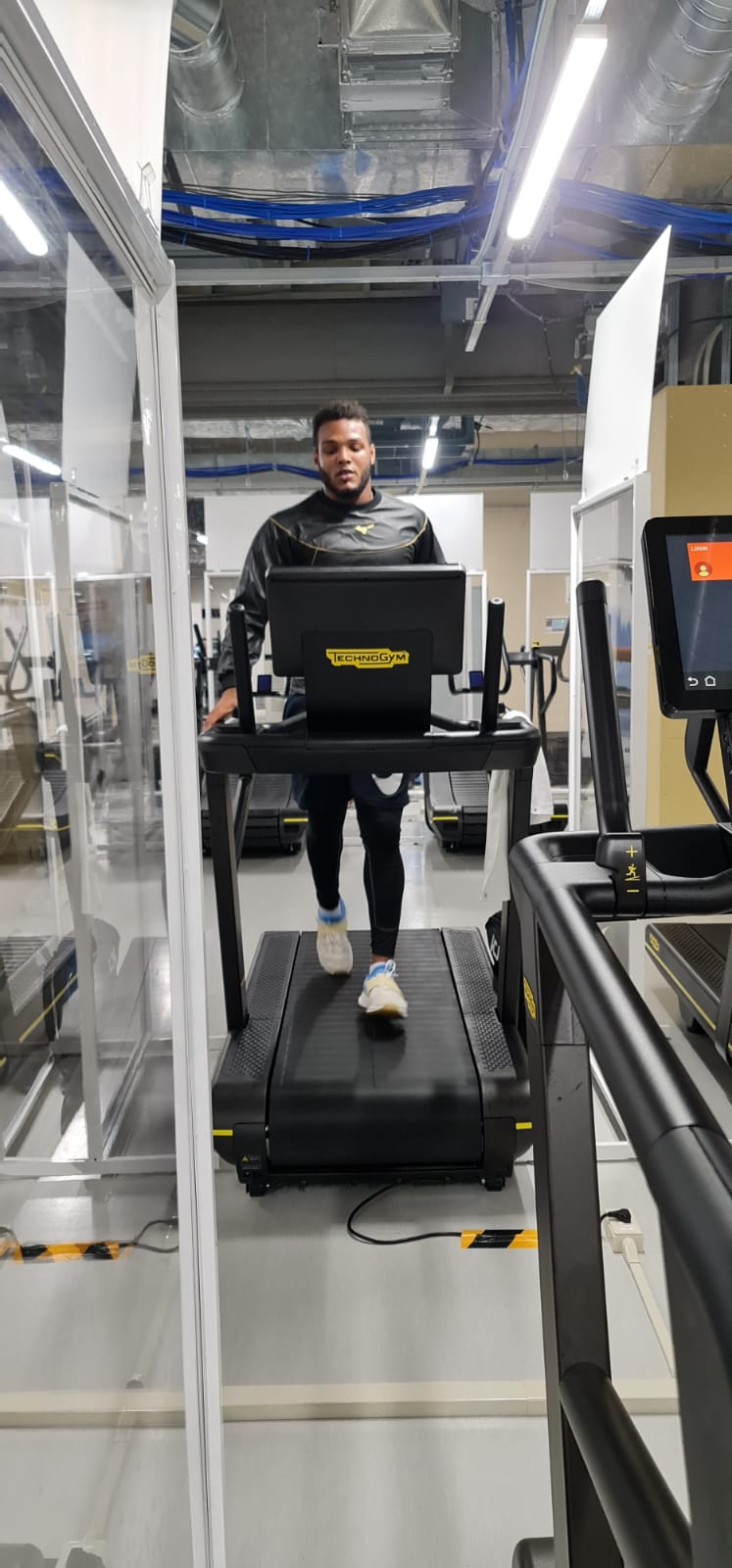 Robert Florentino en una máquina de caminar/ Fuente Externa