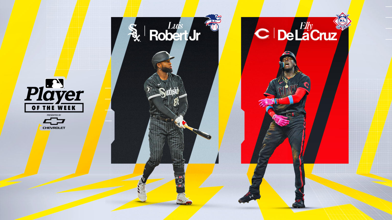 El cañonero cubano de los Medias Blancas, Luis Robert Jr., y el fenómeno dominicano de los Rojos, Elly de la Cruz, fueron nombrados este lunes los Jugadores de la Semana en las Ligas Americana y Nacional, respectivamente–galardón presentado por Chevrolet.