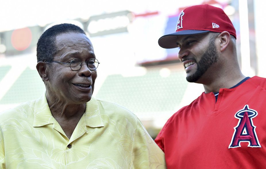 Rod Carew conversa con el dominicano Albert Pujols en el 2017, solo meses después que el panameño recibió un nuevo corazón/ Fuente Externa