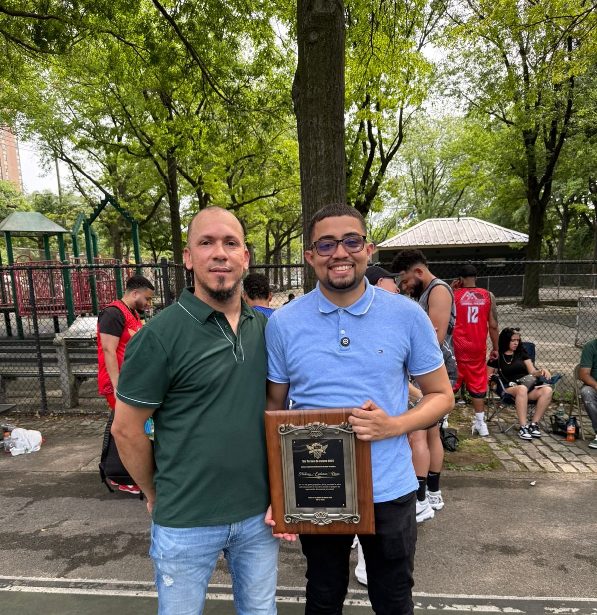 Previo a las competencias Luis Fernando de Jesús del comité organizador entregó una placa de reconocimiento al licenciado Anthony Reyes por sus valiosos aportes en favor del baloncesto francomacorisano.