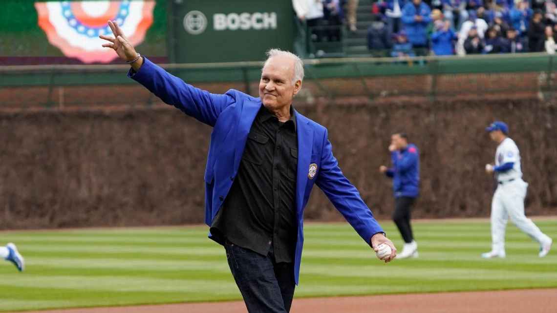 Tiró el primer lanzamiento, rodeado de otras leyendas de los Cubs, antes del primer partido en casa el 4 de abril.