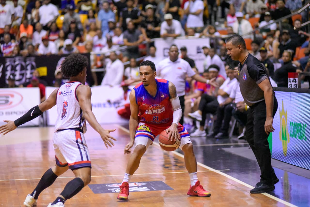 Por Sameji, BJ Fitzgerald lidera la ofensiva con 19 puntos, acompañado por Brahian Méndez con 8 tantos y Alex Abreu con 6 puntos y 6 asistencias, siendo claves en la creación de juego. Mientras que por Pueblo Nuevo, el más destacado ha sido Bryan Saviñón con 14 puntos, seguido de Alberson Pimentel con 8 y Florent Thamba con 7, quienes encabezaron la reacción del equipo rojo que, con una defensa más agresiva y mejor movimiento del balón, logró cerrar la primera mitad a solo un punto.