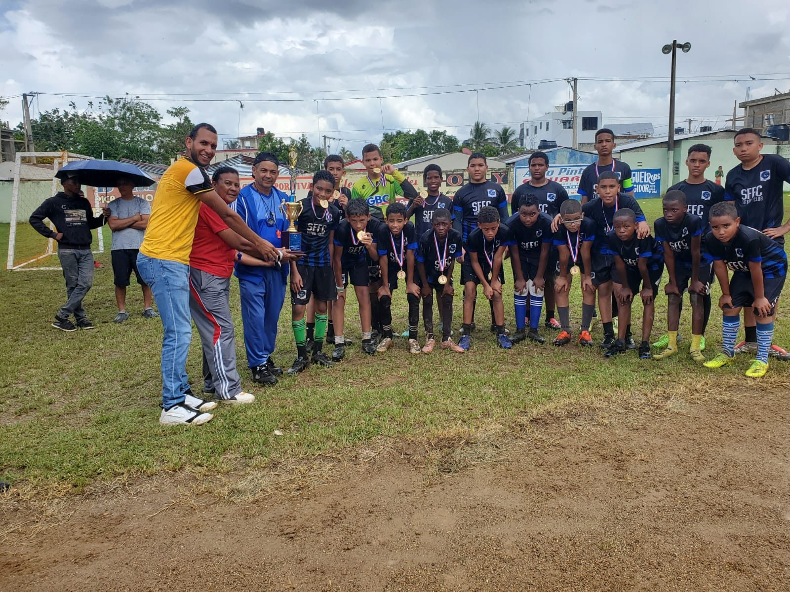 El equipo azul y negro orientado por el veterano técnico Elvis Santos se impuso en el juego final de la exitosa justa deportiva al onceno de los Espinola Fútbol Club con marcador de tres goles por cero para alzarse con el primer lugar del evento.