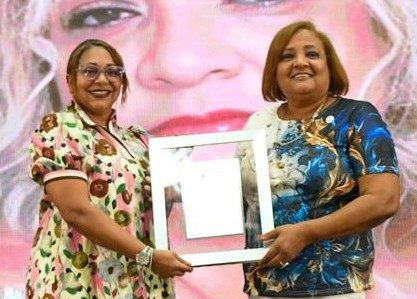 Josly Villar, al centro, recibe su distinción de Ricardo Rosa Chupani y Junior Páez. Fuente Externa