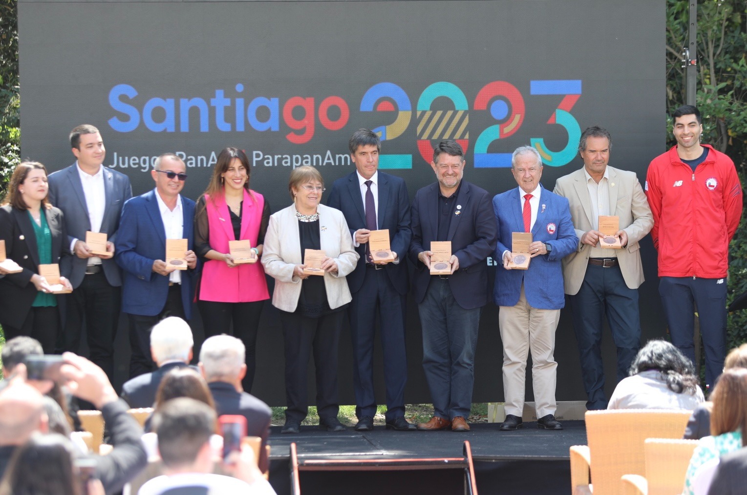 El Director Ejecutivo de la Corporación Santiago 2023, Harold Mayne-Nicholls, encabezó la ceremonia donde los atletas chilenos Vicente Parraguirre (Voleibol) y Denise Rojas (Hockey sobre césped) entregaron medallas conmemorativas a todos los líderes deportivos y gubernamentales que han ayudado a Chile a hacer realidad el sueño de finalmente albergar el Juegos Panamericanos.