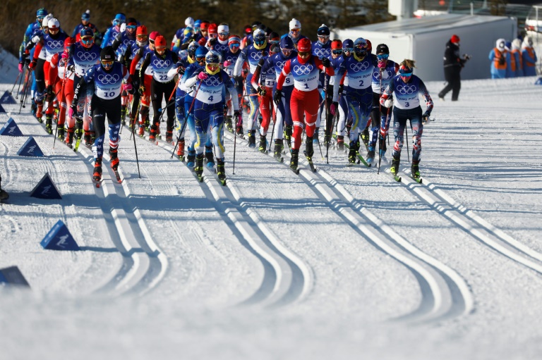Unas esquiadoras de fondo compiten en los Juegos Olímpicos de Pekín el 5 de febrero de 2022 en Zhangjiakou. Fuente Externa.