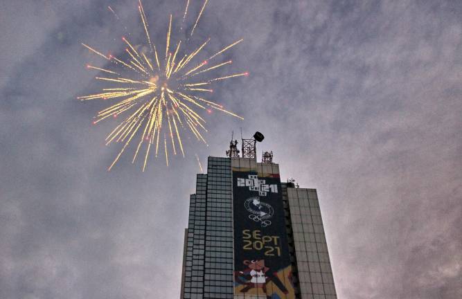 CALI, Colombia.- Los más de 2.4 millones de habitantes de Santiago de Cali pudieron disfrutar de un espectacular show pirotécnico desde la Torre de Cali, el edificio más alto de la ciudad con más de 180 metros de altura y que se puede divisar desde cualquier rincón de la “Capital Mundial de la Salsa”. Fuegos Artificiales que daban el vamos a la cuenta regresiva del evento deportivo para jóvenes más importante del mundo: los Juegos Panamericanos Junior Cali 2021.