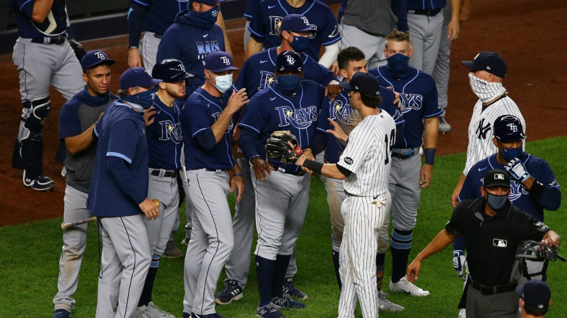 El abridor de los Yanquis Masahiro Tanaka había golpeado a Joey Wendle con una recta de 95 millas en la primera entrada. El relevista de Nueva York Ben Heller fue expulsado al día siguiente por golpear con un lanzamiento a Hunter Renfroe.