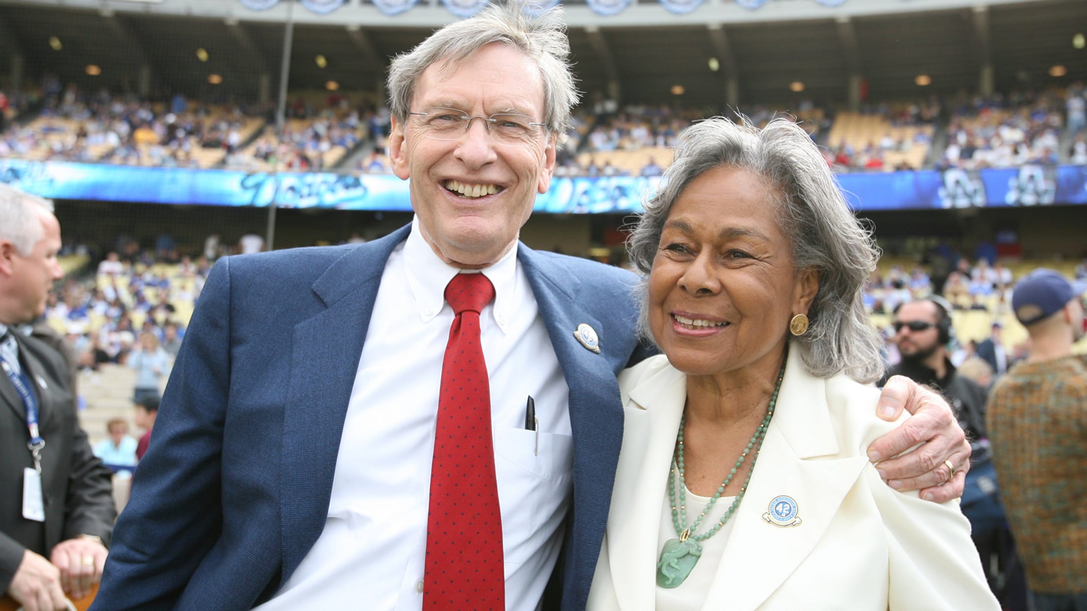 La viuda Robinson y el ex comisionado Bud Selig/ Fuente Externa