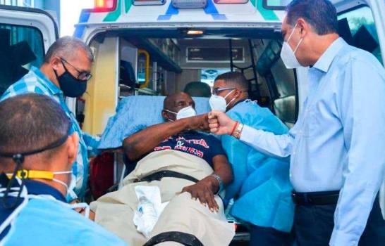 Santiago Hazim, derecha, saluda al ex pelotero Ricardo Carty, antes de abordar una ambulancia.