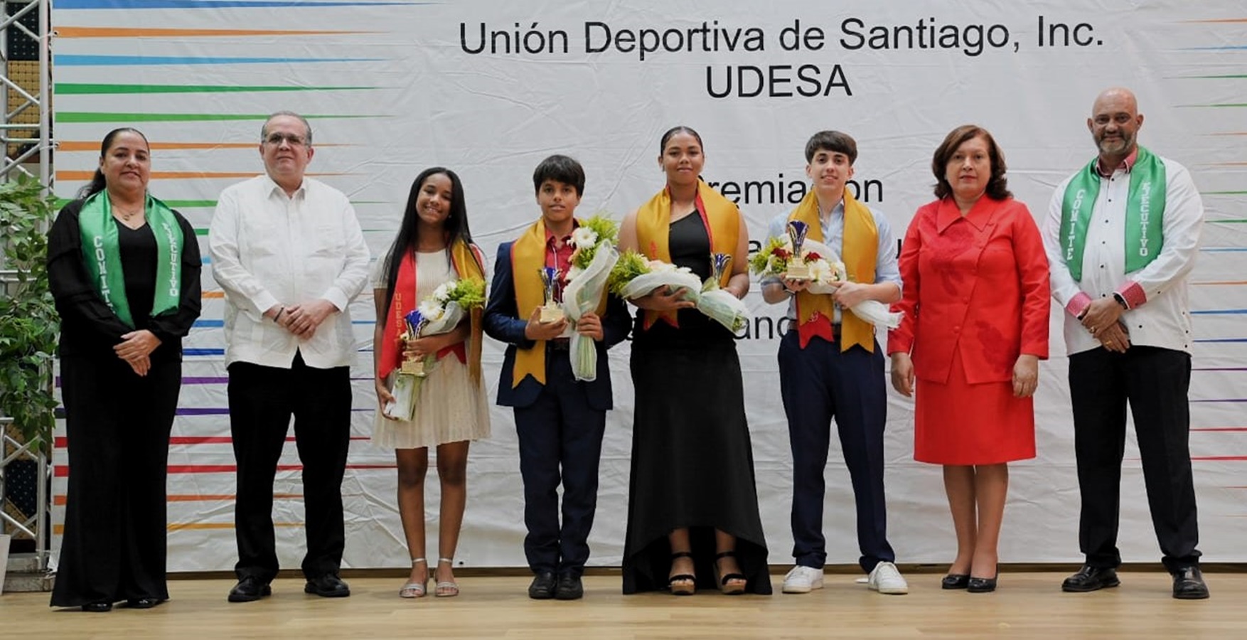 SANTIAGO.- Los atletas, Dixsany Silverio (Tenis de Mesa), Gerald Durán (Karate), Scarlet Rodríguez (Karate) y Ramón Vila Mena (Tenis de Mesa), fueron los atletas más destacados del año 2023 premiados la noche de este martes en la XV Gran Gala Anual Premiación Infantil y Juvenil, Rafael -Panchón- Tejada, realizada por la Unión Deportiva de Santiago (UDESA).