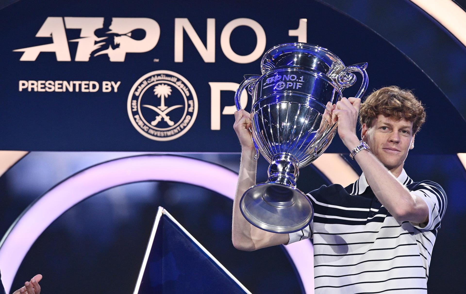 Roma, 11 nov (EFE).- El italiano Jannik Sinner recibió este lunes, justo antes del partido de las Finales ATP de Turín entre el ruso Andrey Rublev y el alemán Alexander Zverev, el trofeo que le acredita como número uno del ránking al finalizar el año, título que alzó por primera vez en su carrera.