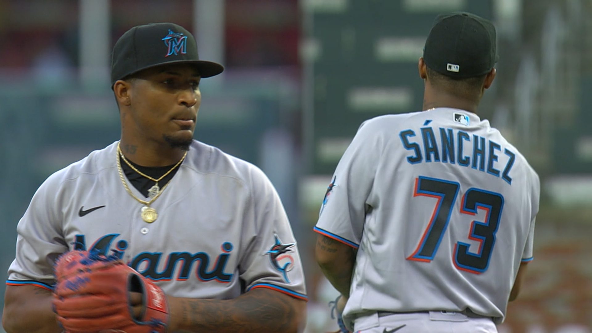 En el segundo partido de la serie contra los Bravos, Sánchez lanzó 60 strikes, incluyendo dos que Statcast registró al menos de 100 mph. También en el primer capítulo, lanzó una recta de 100.6 mph que su compatriota Marcell Ozuna bateó de foul.