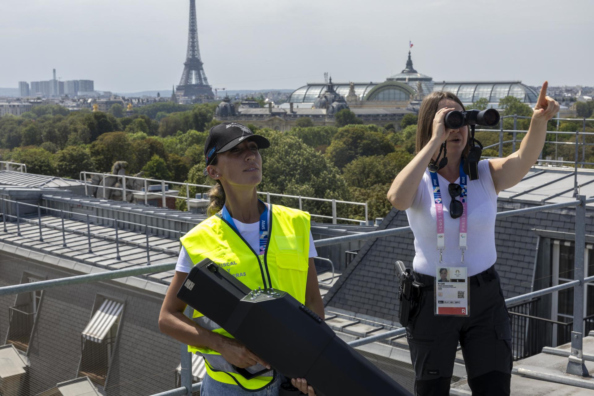 «Nos dedicamos, como unidad antidrón, a velar por la seguridad del espacio aéreo», explica a EFE la sargento Elisa Hernández, a quien este miércoles, junto a la guardia civil Vanesa Peña, le tocaba hacer vigilancia bajo un sol de justicia en la famosa plaza parisina.